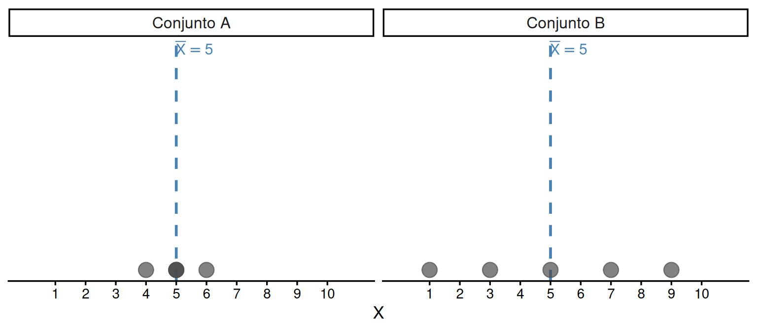 Observamos que a média não distingue os dois conjuntos. Precisamos de uma medida que capture o quanto as observações se afastam do centro.