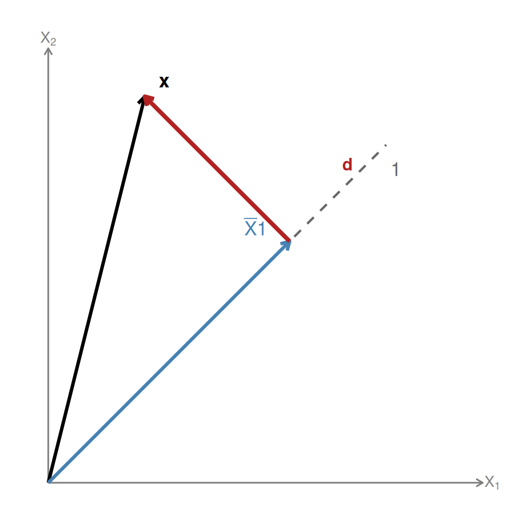 \[\mathbf{d} = \mathbf{x} - \bar{X}\mathbf{1}\]